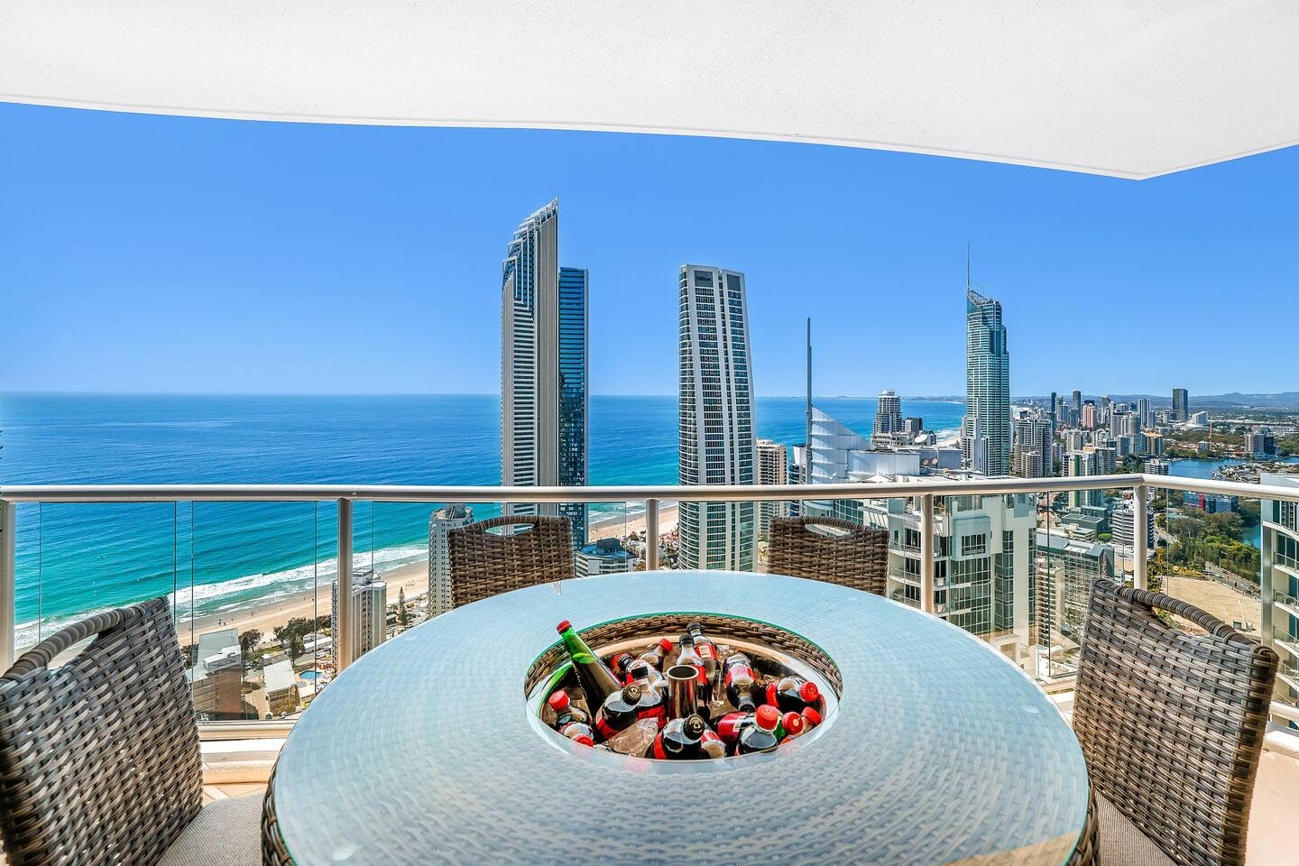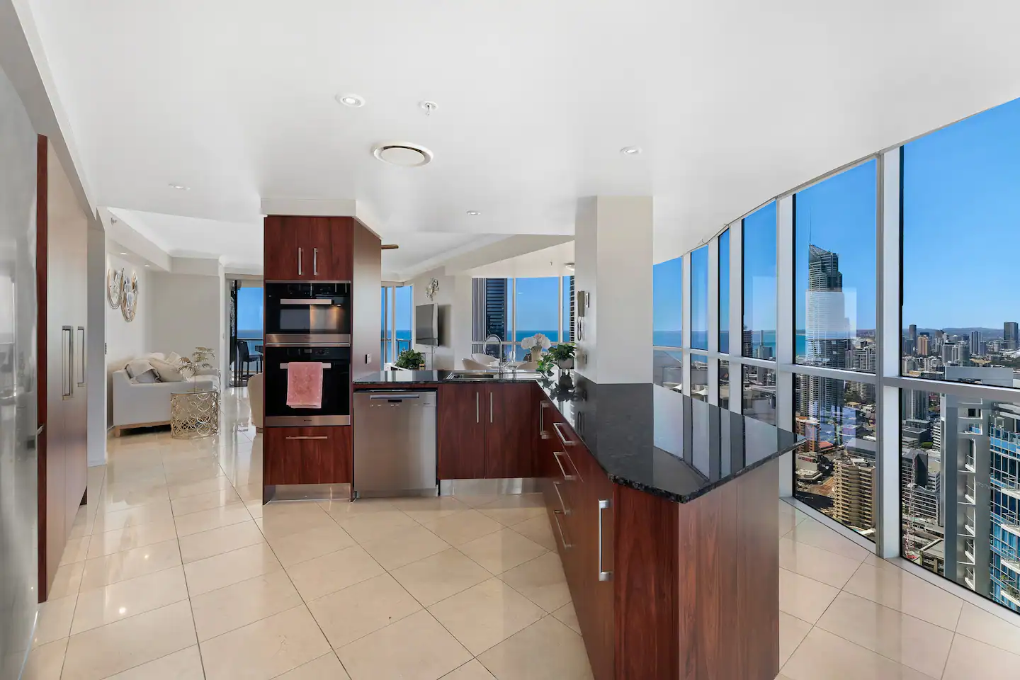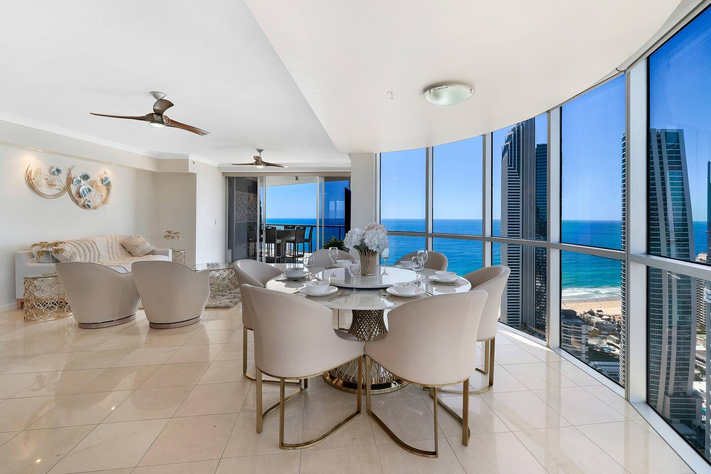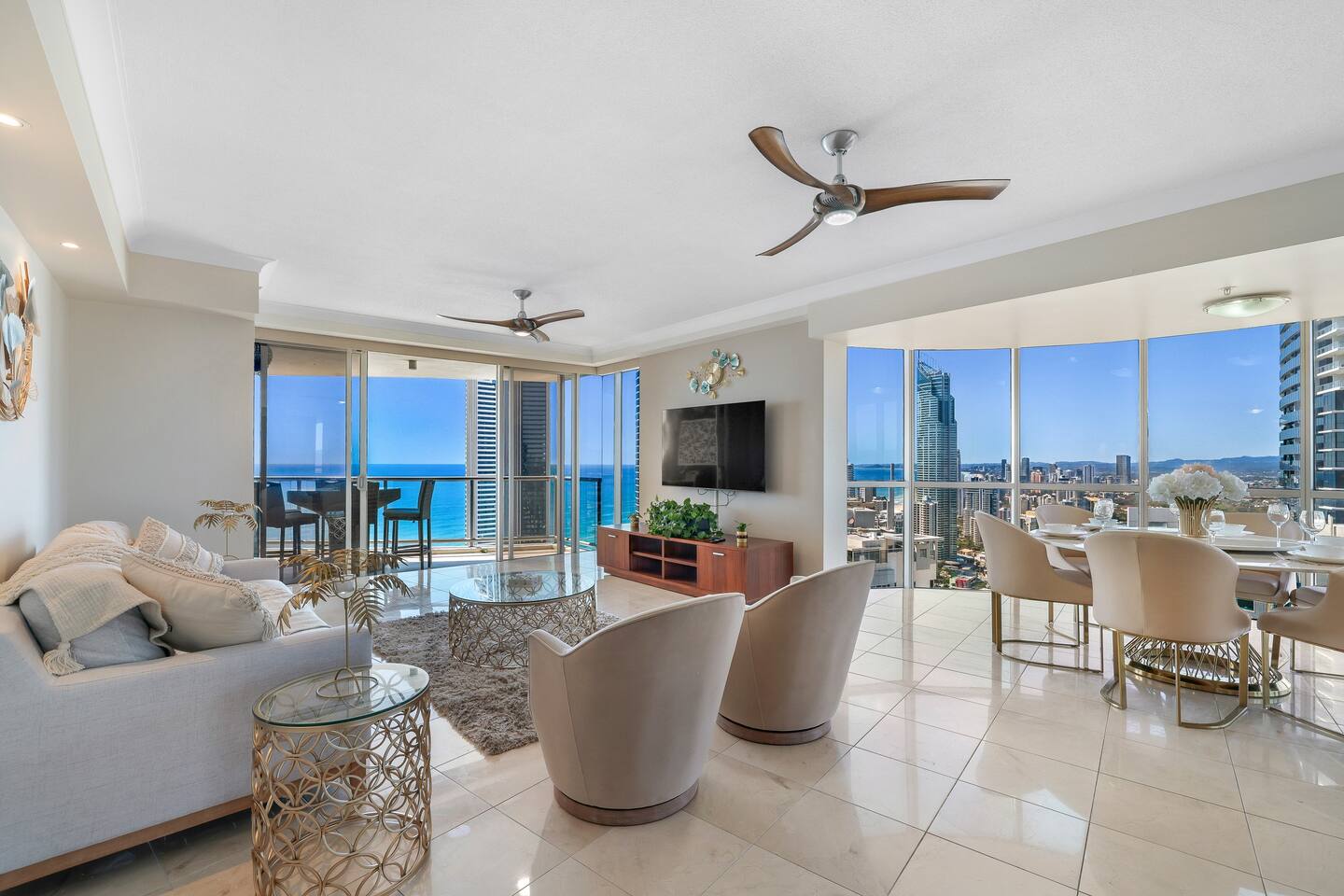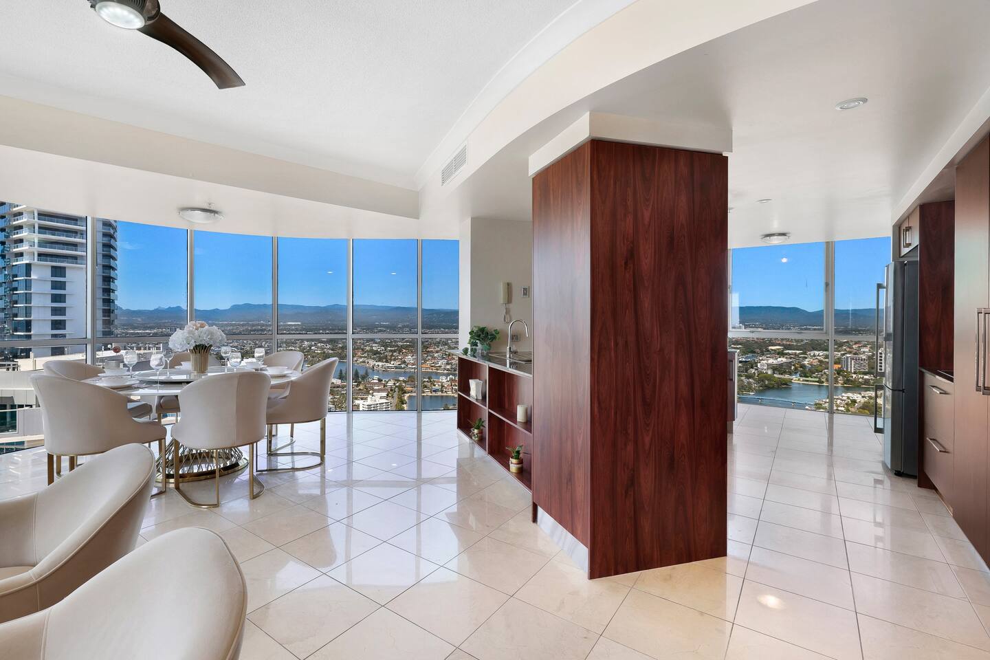 Located just a short stroll away from Surfers Paradise beach, this luxury three bedroom sub penthouse with floor to ceiling windows and marble flooring, on the 44th floor of the prestigious Chevron Renaissance Skyline Tower North, has the real WOW factor and provides magnificent 180 degrees ocean and hinterland views from every room of the property.
